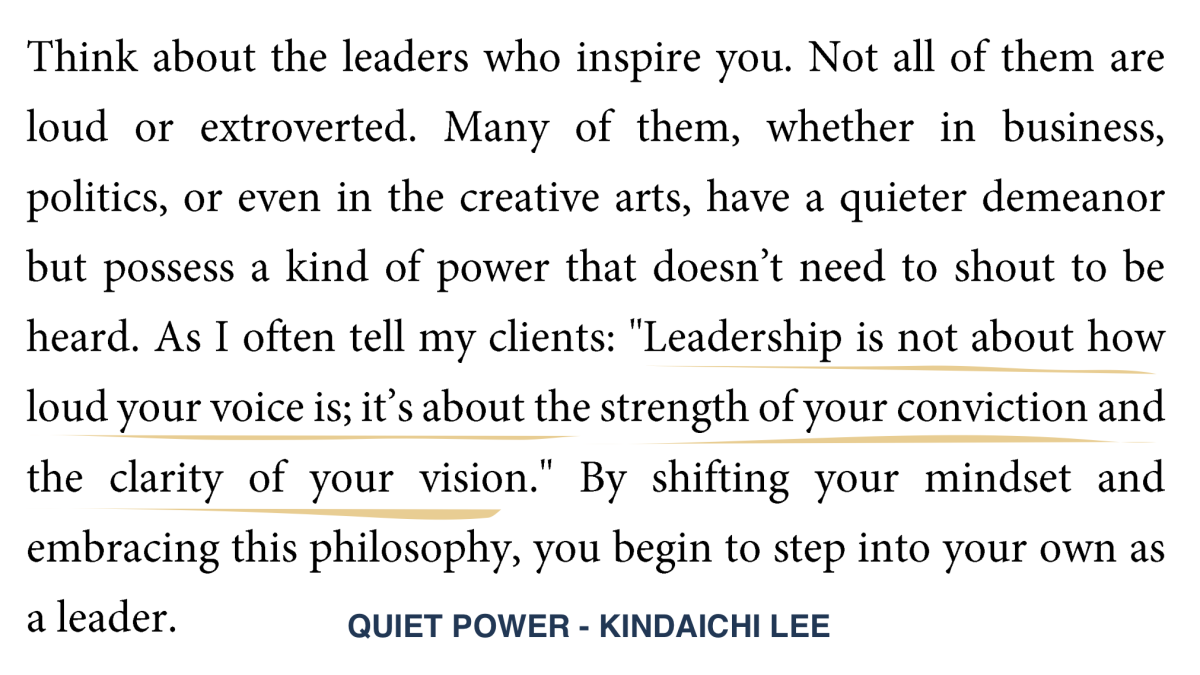 This is the lesson from Chapter 1 of “Quiet Power: Leading with Impact.” And it is just the beginning.